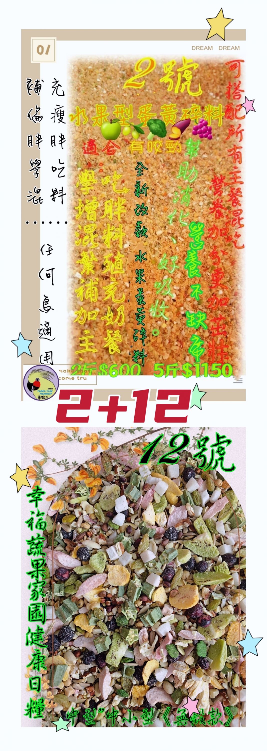 ⭕️中小型👉2號料可以搭配10.11.12.一起混吃。