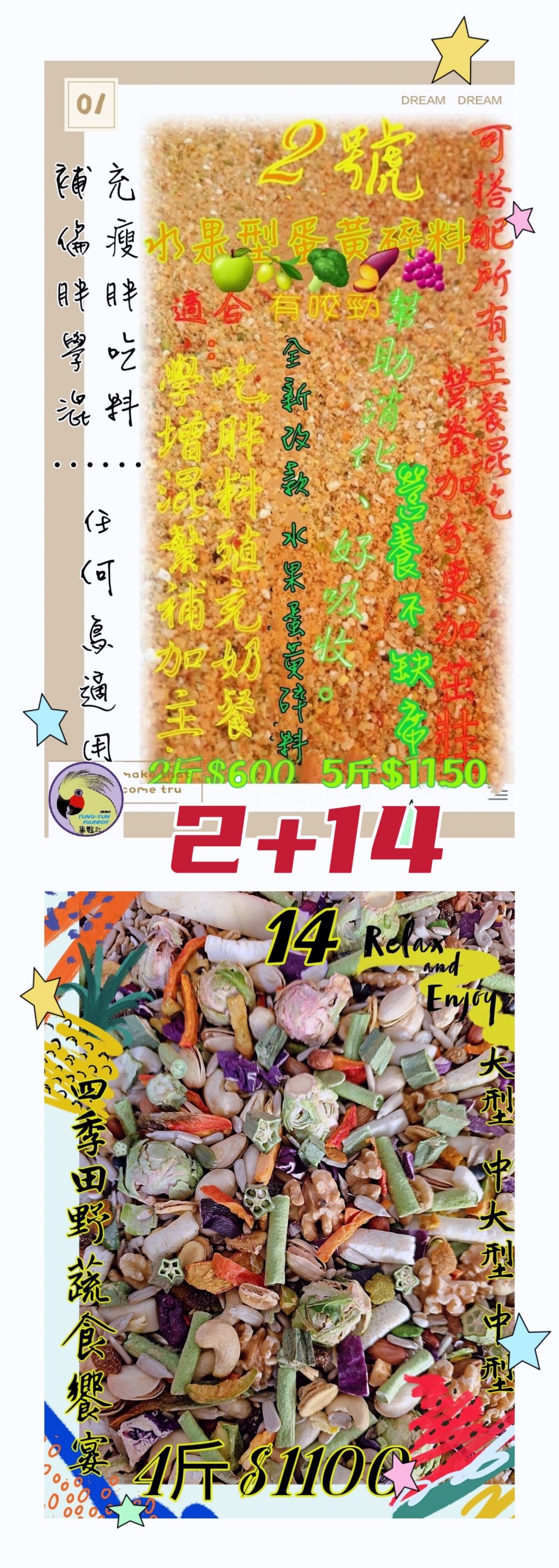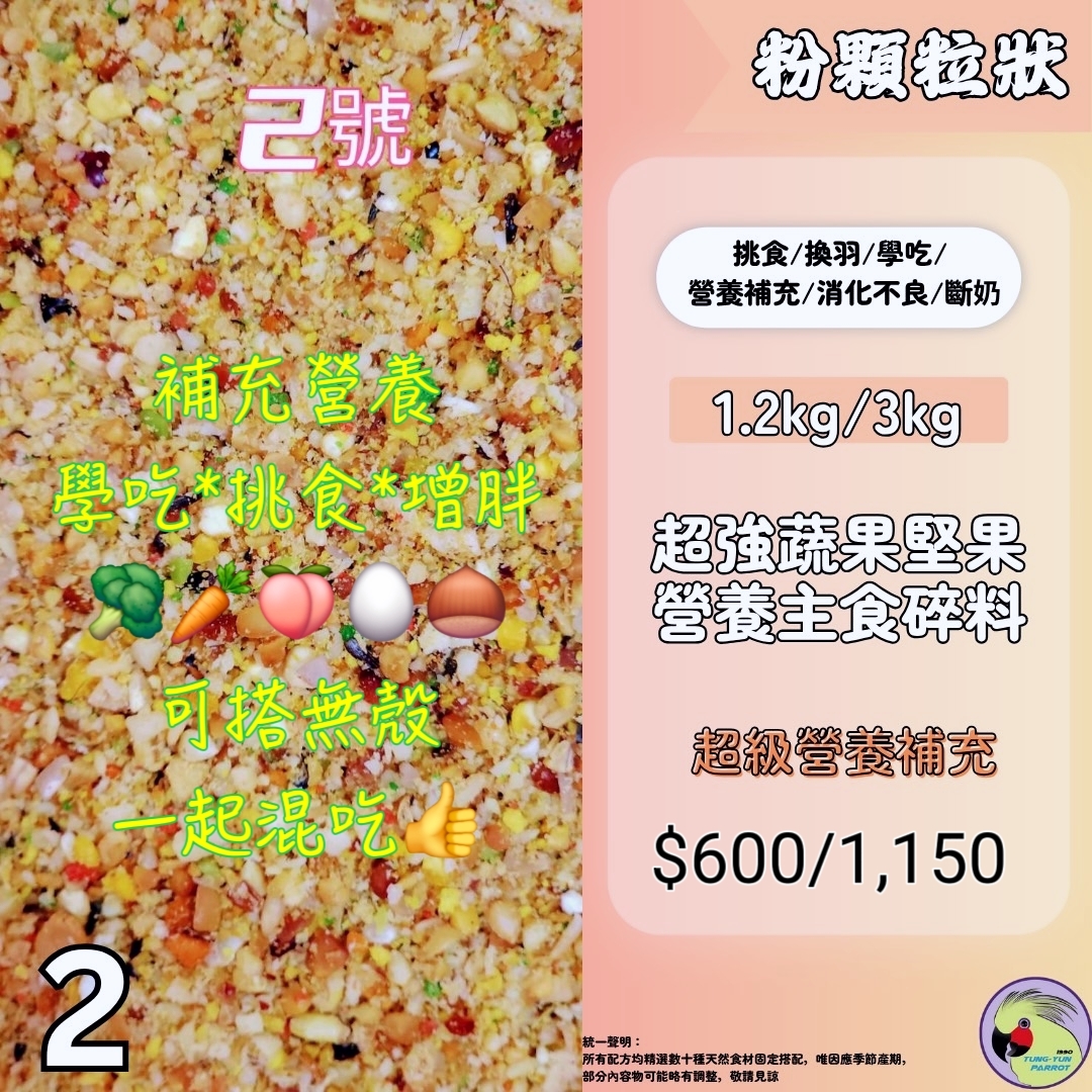 建議:👉如果大型鳥要改成吃(碎料2號)當主食的話、也很夠營養唷!條件之下要先改料⋯營養很夠。主食也可以喔~