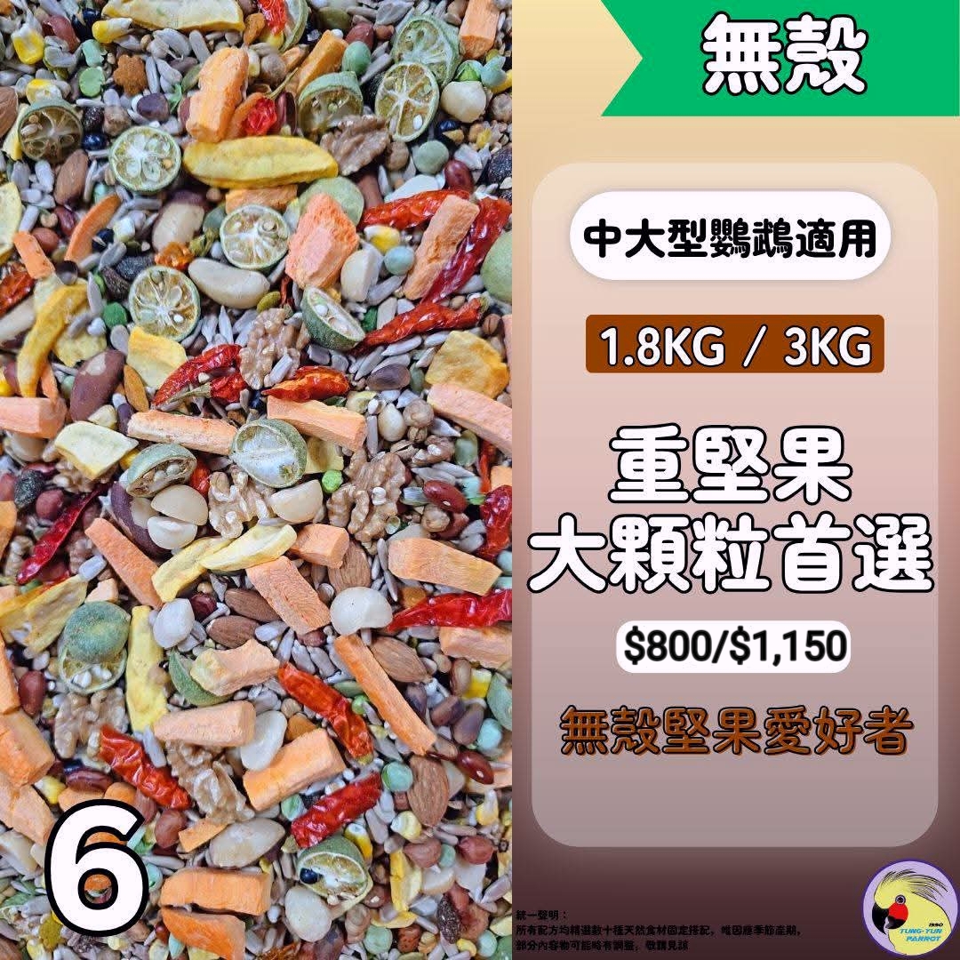 小建議:👉(6號)偏愛吃堅果大顆粒的鳥寶可使用、可以給喜愛堅果的鳥寶首選,可以選6號⋯裡面(大顆粒居多)適合大型‘’中大型‘’鸚鵡適用唷!如果要給中型‘’中小型‘’食用必須要剪小塊一碎。比較好咬勁