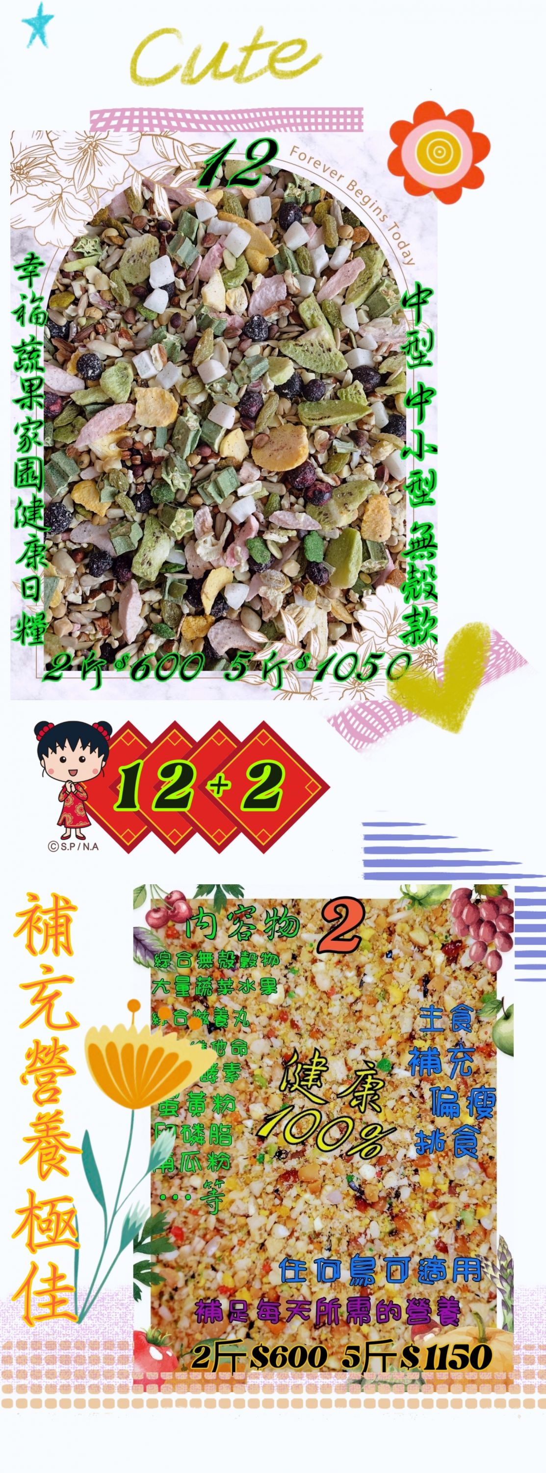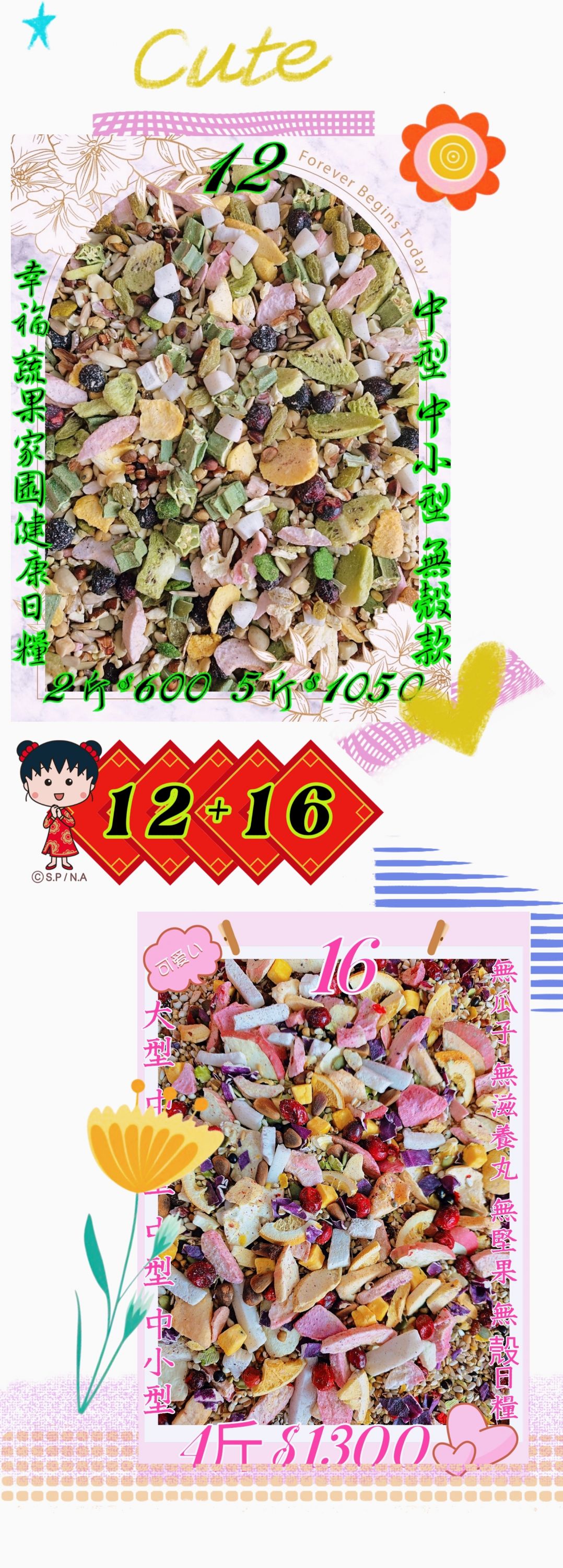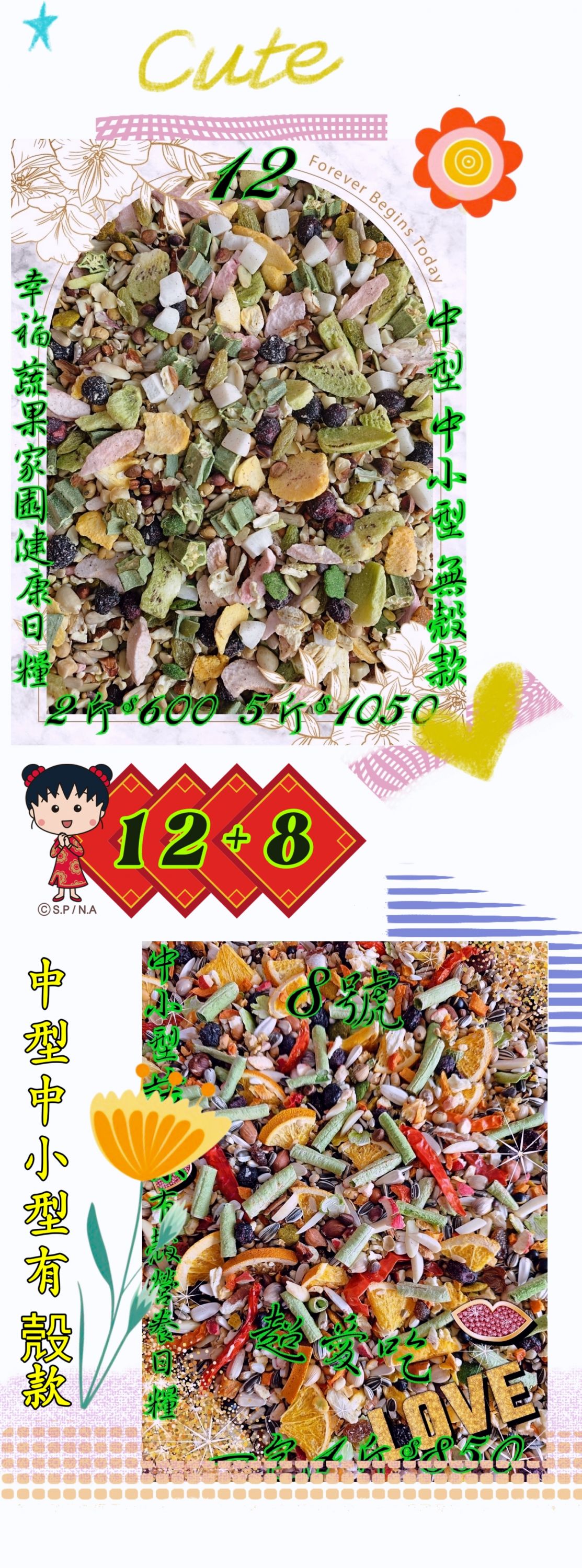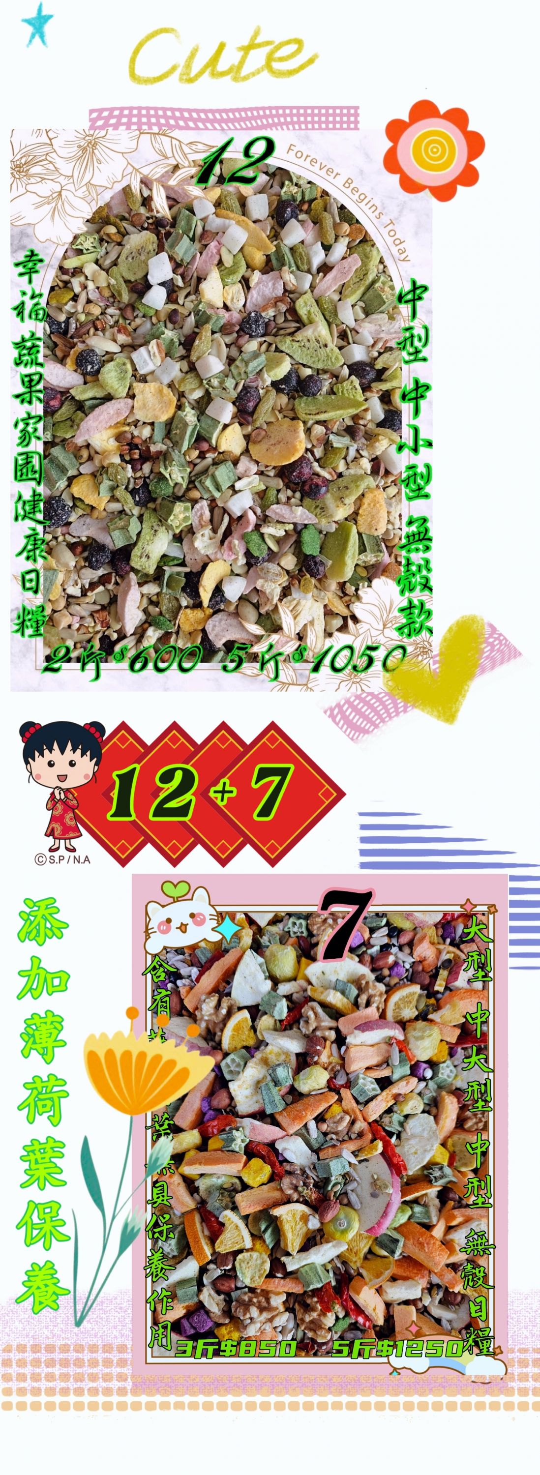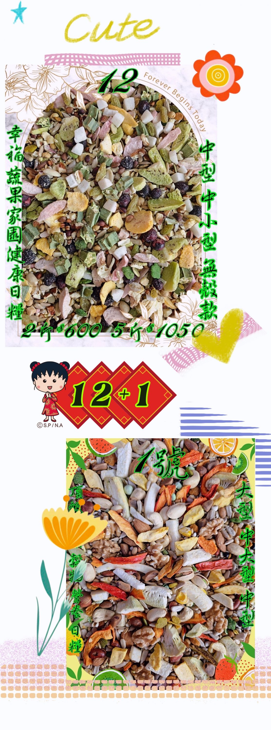 適合:偏中小型鸚鵡、如:凱克、塞内、月輪、賈丁、红肩金剛、金太陽、小太陽、和尚、锥尾中小型的相關科通用⋯⋯可補足營養全方位缺乏營養不良的食物、(採用食品级原料)。🈚️不添加防腐劑、🈚️不加化學原料、👉鸚鵡吃的很安心、我們不斷創新、不斷變化口味、我們做的用心你們買的安心、鳥吃的安心、吃出健康茁壯~肌肉💪、12號當主食也可以不用在添加任何東西了、一包搞定也可以。或是也可添加其它無殼料會更加豐富、鳥寶更多選擇⋯健康加分