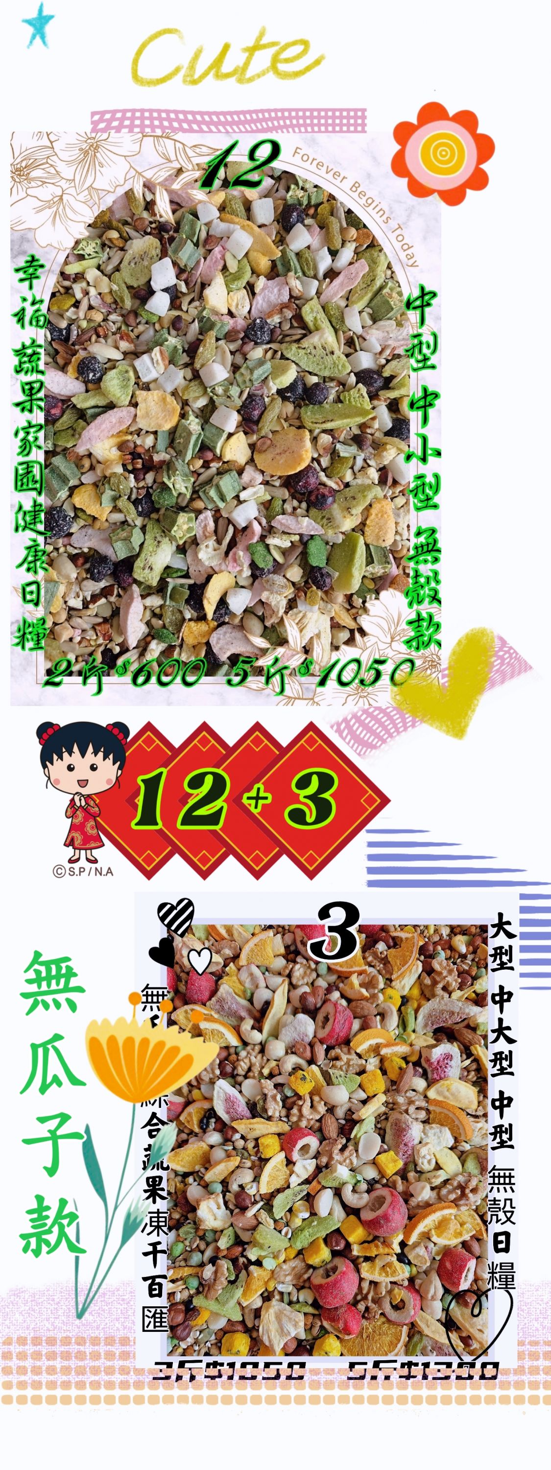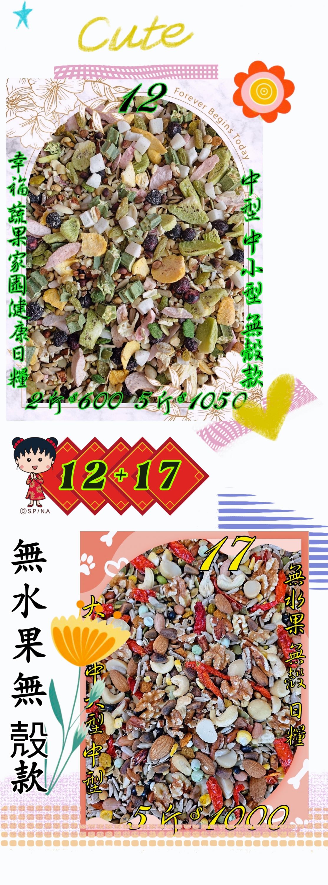 進口高级脫殼穀物30幾種、馬尾松子、滋養丸鳥寶喜愛、…、鸚鵡超爱吃的水果凍乾‘’青提子🫒、🍑水蜜桃凍干塊🏆、黃桃凍干、藍莓凍干、核桃粒、杏仁粒、椰子塊、蜜薯塊、奇異果凍干🥝、波蘿凍干、秋葵凍干、玉米凍干👍⋯(添加原汁果酸)⋯幫助鸚鵡消化更順暢吸收更完全、加入果酸腸胃蠕動好吸收。全是採用純天然食材進口果乾👍一口接一口⋯((也會隨著季節做更新調配))