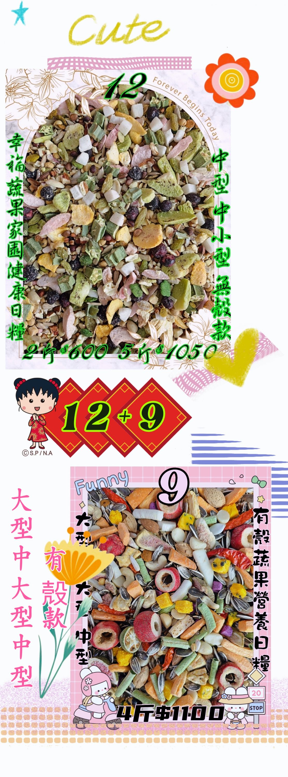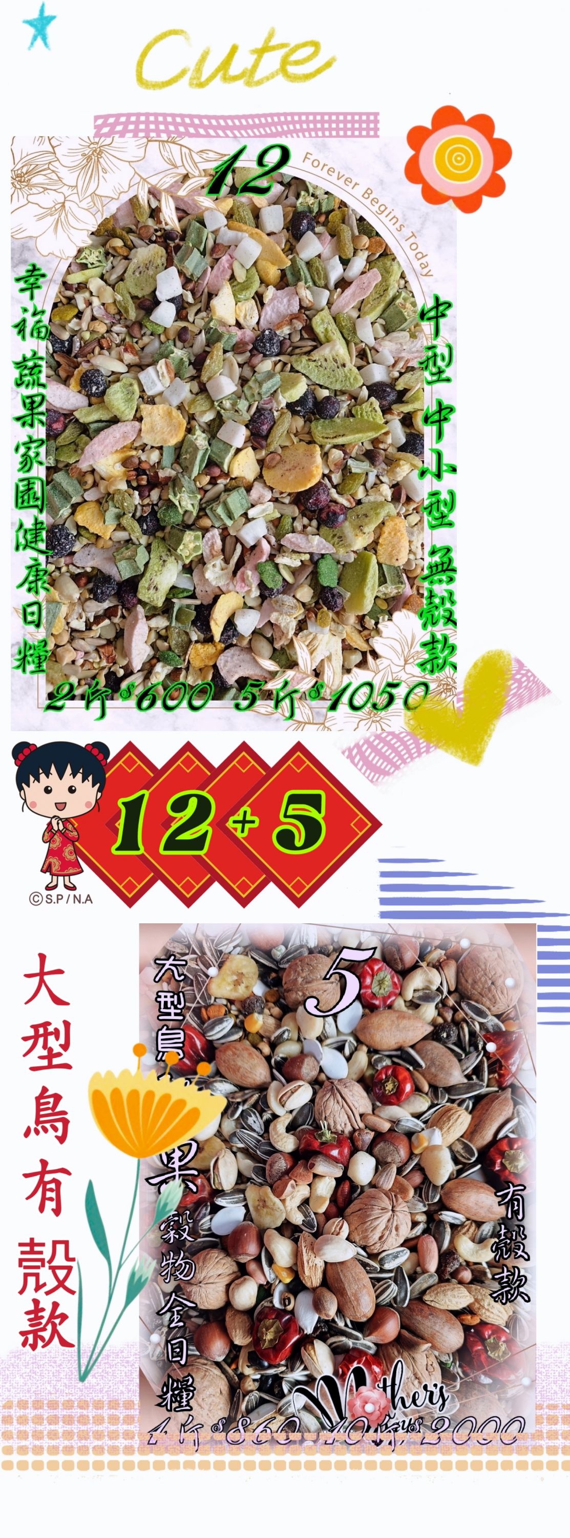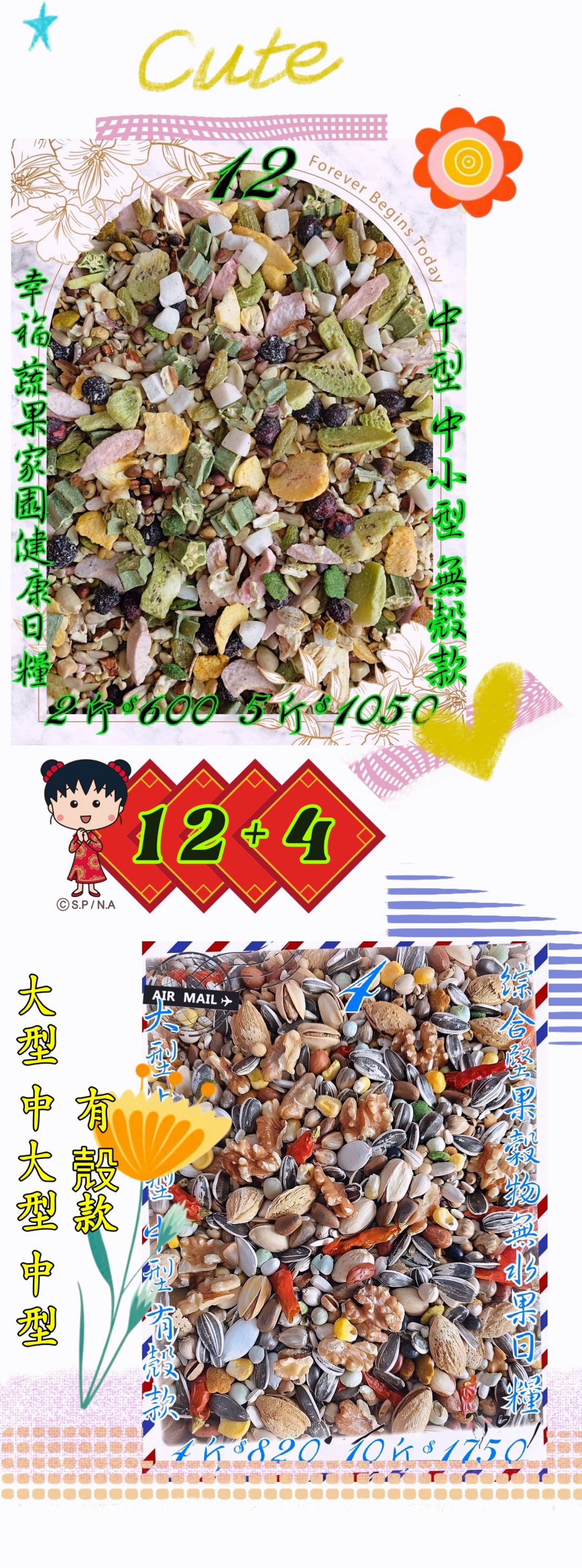 👍這包12號無殼料很適合中小型使用:如p属科、锥尾科、金太陽、小太陽、月輪、和尚、塞內、賈丁、玄鳳、小鸚、凱克、中小型喜愛無殼皆通用⋯(偏小型鳥需要剪,或是敲碎一點)或是也可以用來混合其它中小無殼混合食用。有助於添加豐富營養吸收、營養會更加均衡、長期吃下來羽毛會變漂亮鲜艷⋯建議使用👉(12號+2號)混合吃12号就放底層上面鋪上2號因為2号是碎料才會先吃到颗粒⋯2號裡含有大量(鈣)也可以當主食單吃用。建議👉(12號+2號)這樣吃會有很大效果鈣營養增胖胖。建議👉(12號+11號)(12號+10號)(12號+13號)(12號+16號)都是中小型無殼不錯建議,混合吃也超级豐富豪華型唷!全中小型都適合混吃。