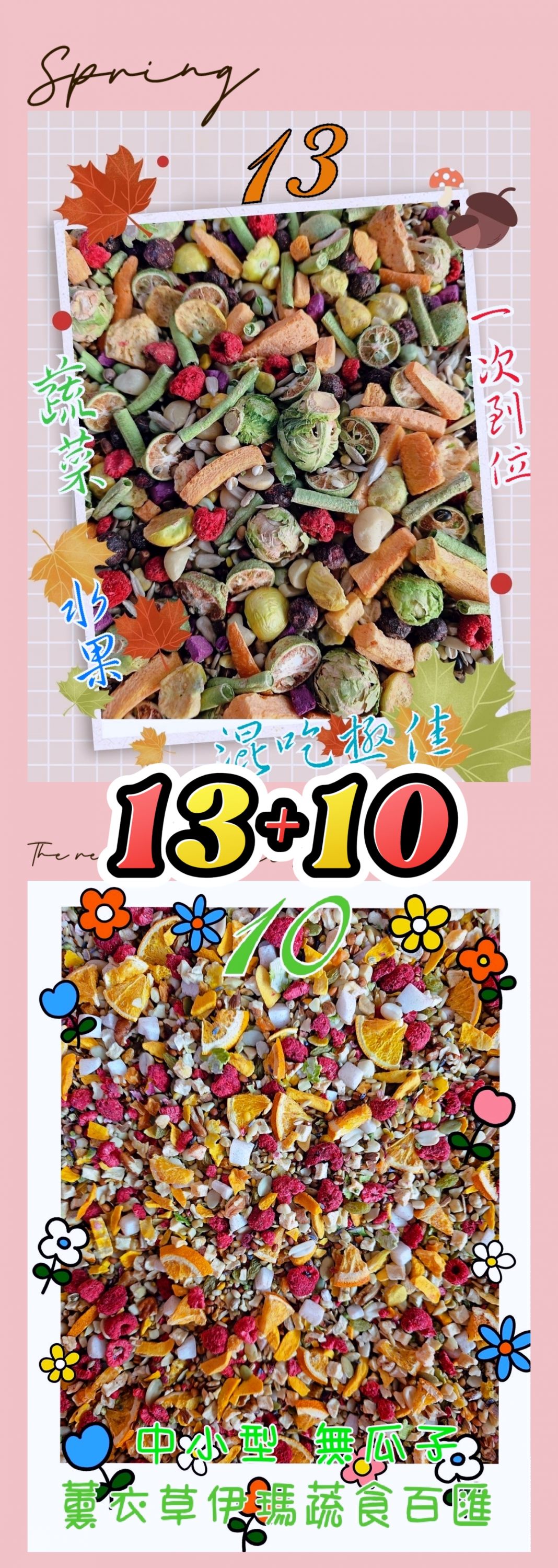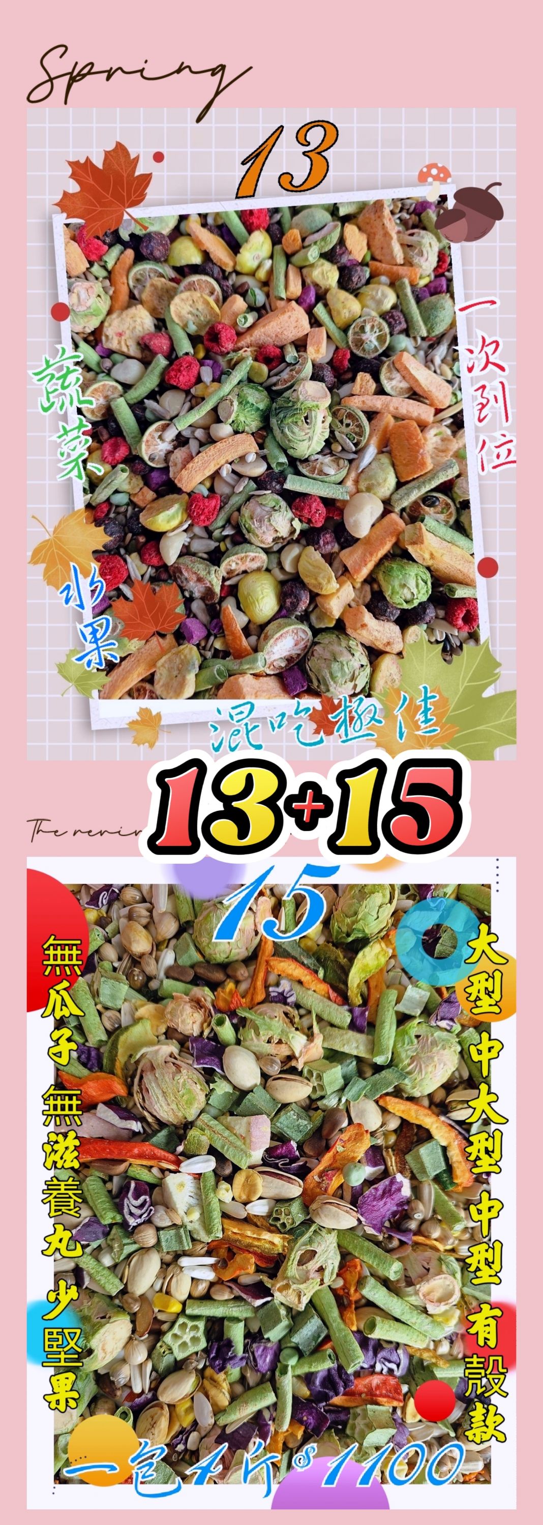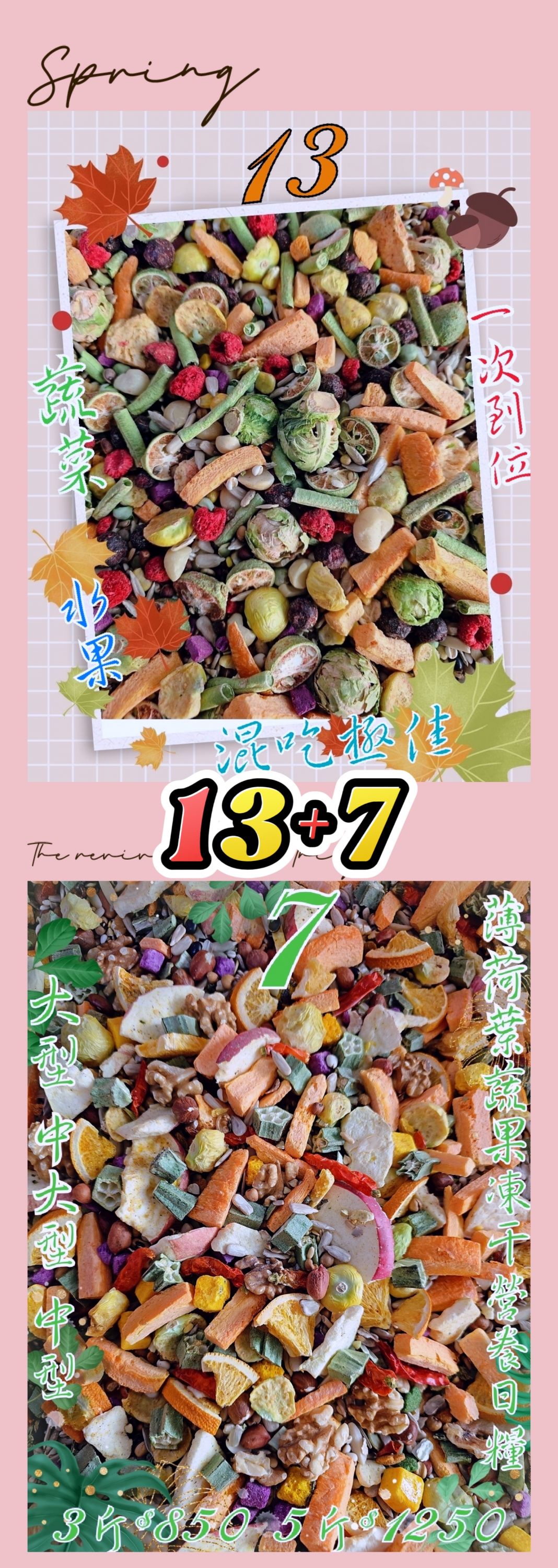 進口高级脫殼穀物20~30幾種(少許有殼)、蕎麥(有殼)、稻穀(有殼)馬尾松子(有殼)、滋養丸鳥寶喜愛、多種蔬菜乾…、鸚鵡超爱吃的水果凍干、青豆凍干、紅蘿蔔凍干條🏆、燈籠果凍干、藍莓凍干、孢子甘藍凍干、長豆角凍干、紫薯凍干、鳳梨凍干塊、青桔凍干、覆盆莓凍干👍⋯幫助鸚鵡消化更順暢吸收更完全。全是採用純天然食品凍干👍一口接一口⋯((也會隨著季節做更新調配))