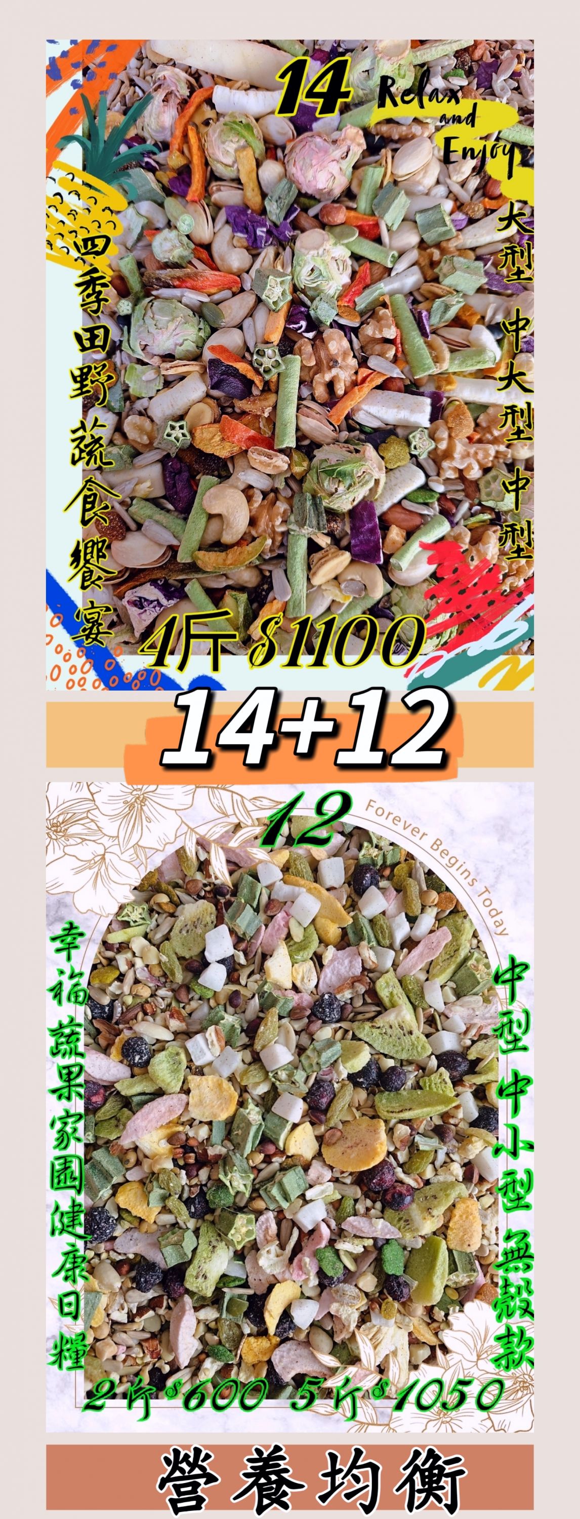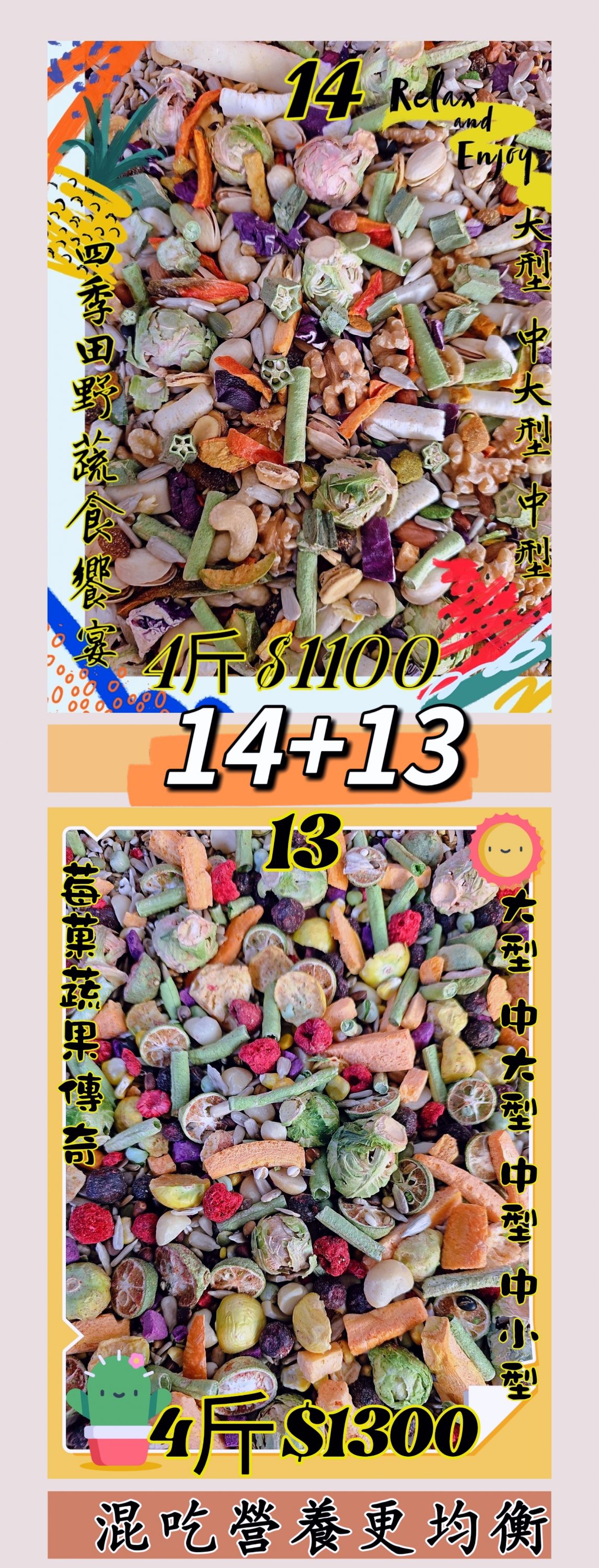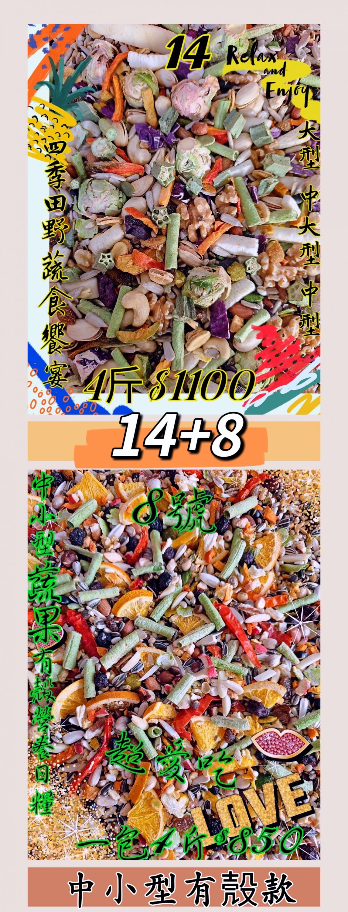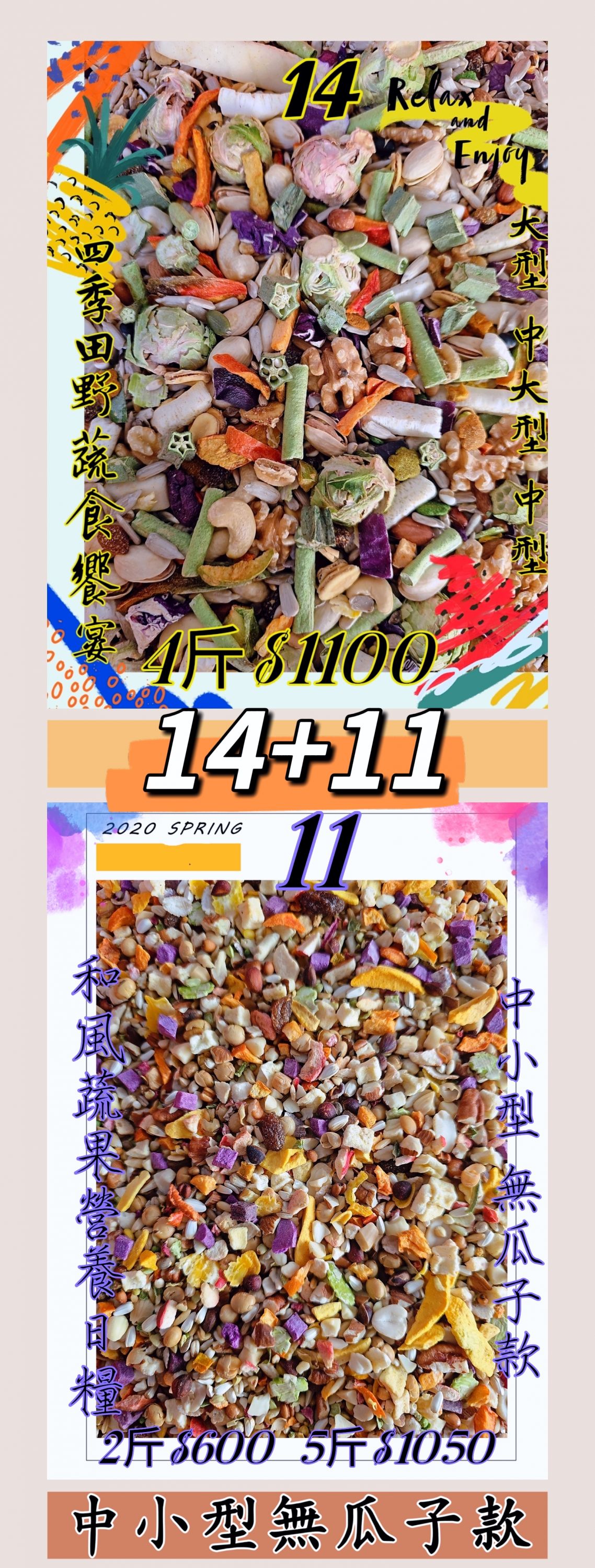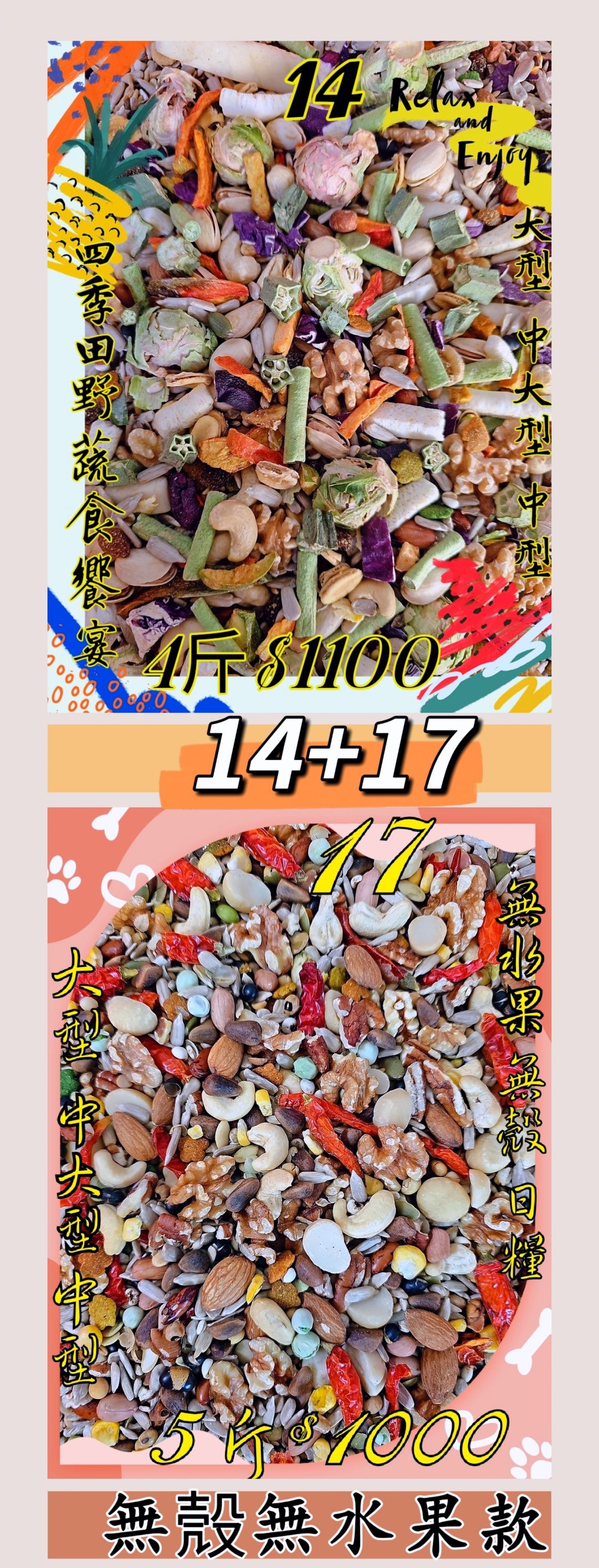 💕貼心小建議~中小型鳥寶若是要更多樣話可以搭配中小型部分(2,10,11,12,7,13,16,)混合吃這些是無殼日糧⋯超👍⏩比較適合中型中小型使用、更加豐富也會多樣化營養。