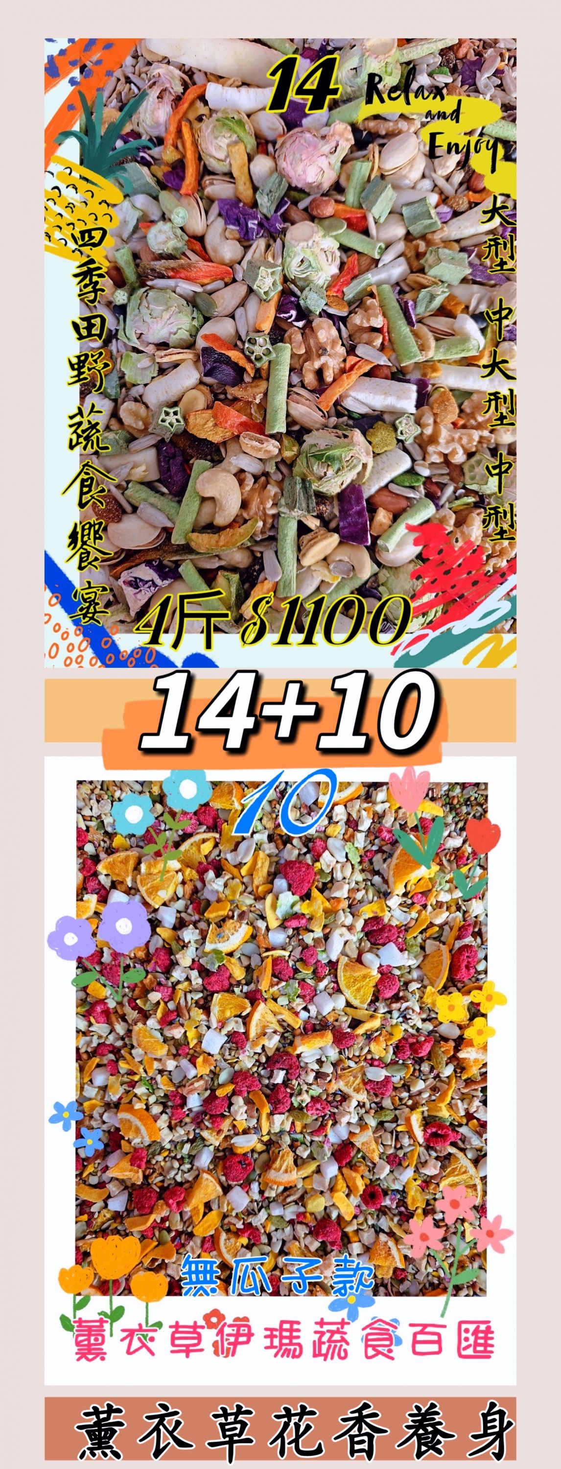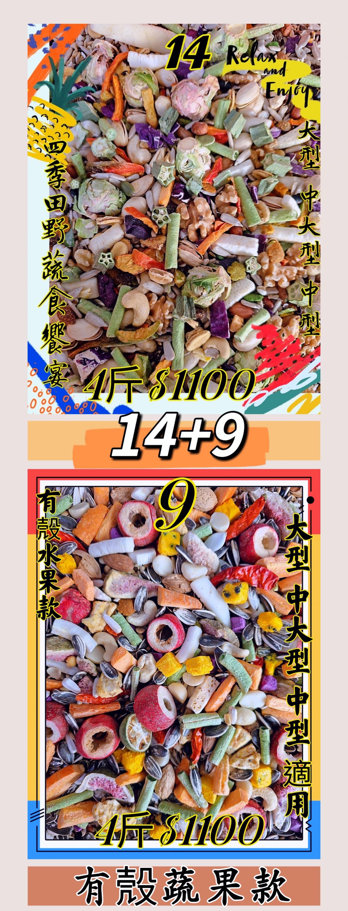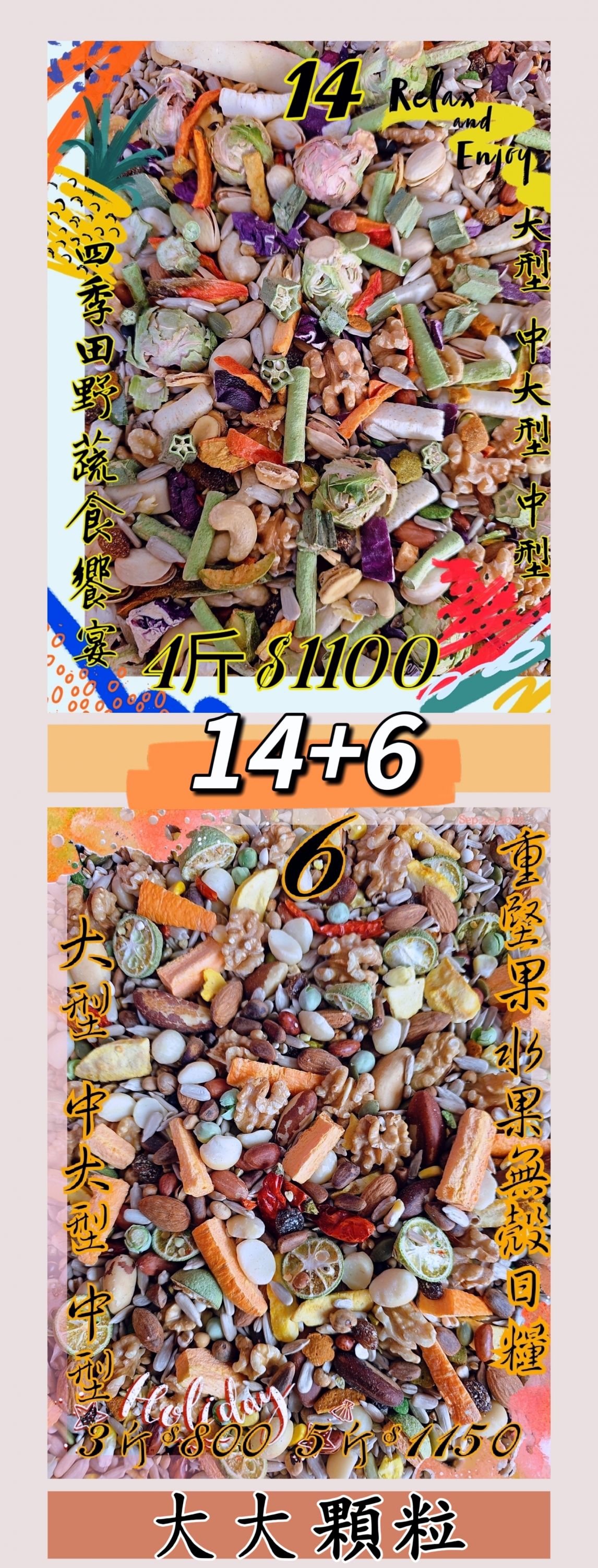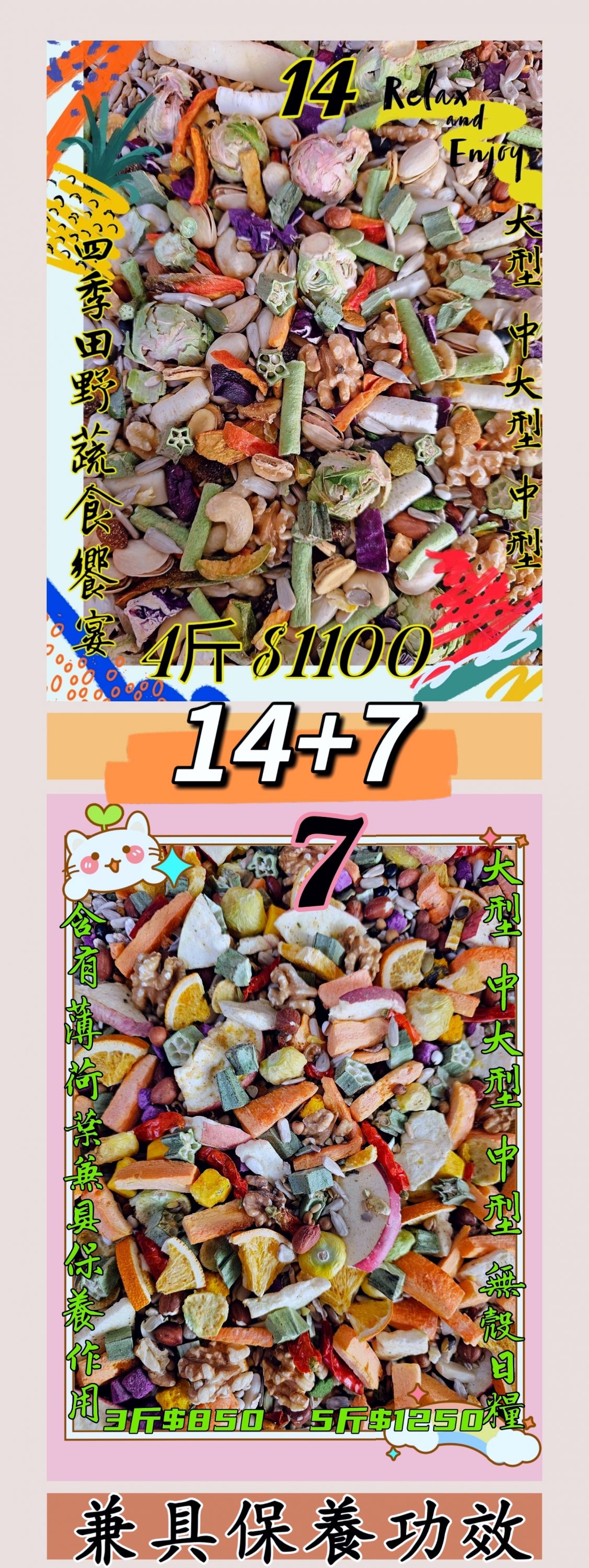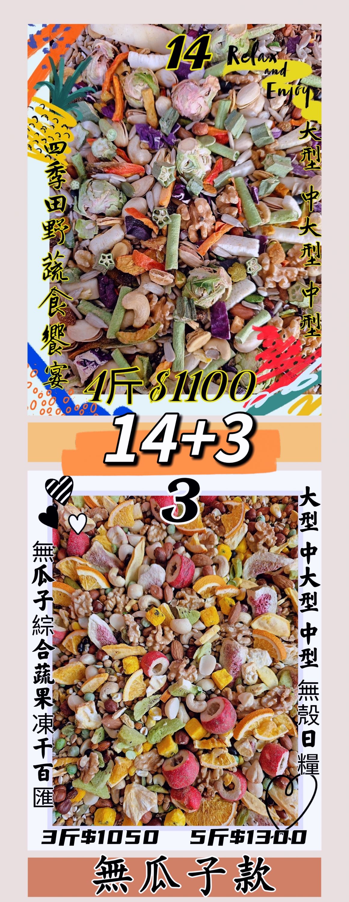 💕貼心小建議~中小型鳥寶若是要更多樣話可以搭配中小型部分(2,10,11,12,7,13,16,)混合吃這些是無殼日糧⋯超👍⏩比較適合中型中小型使用、更加豐富也會多樣化營養。