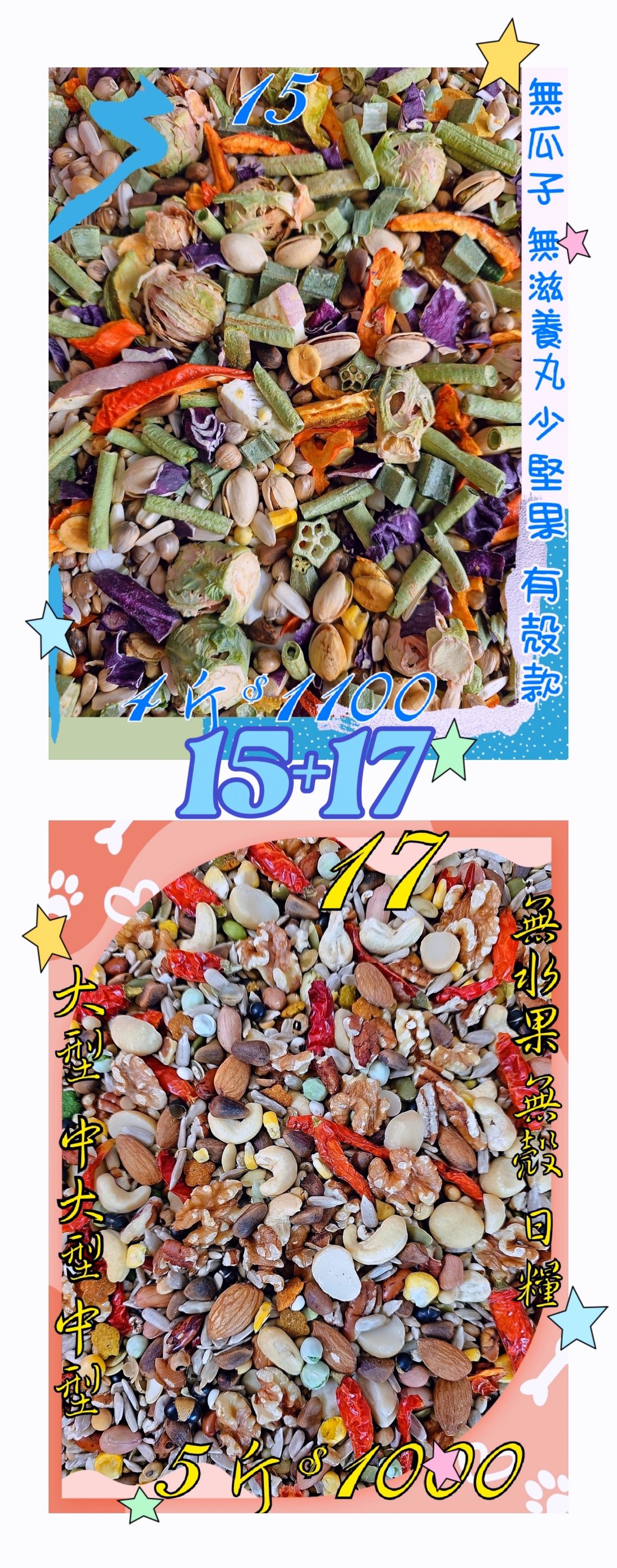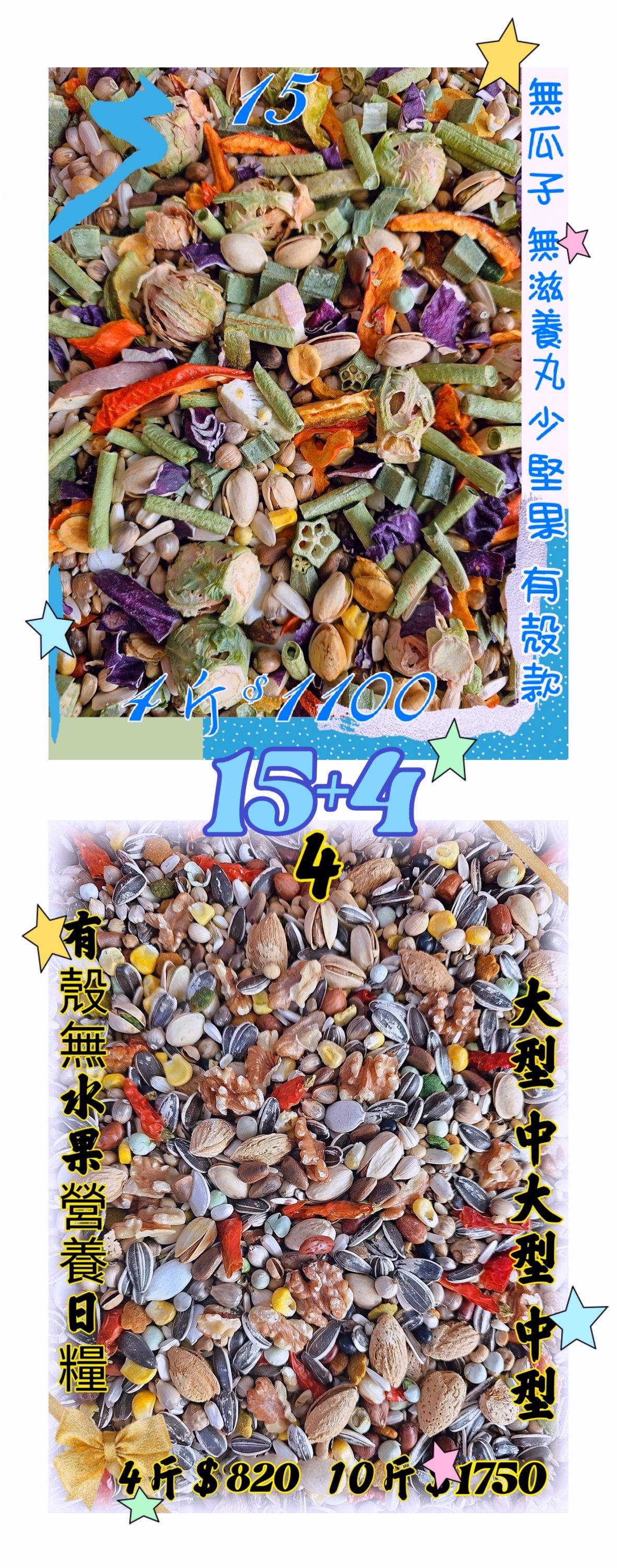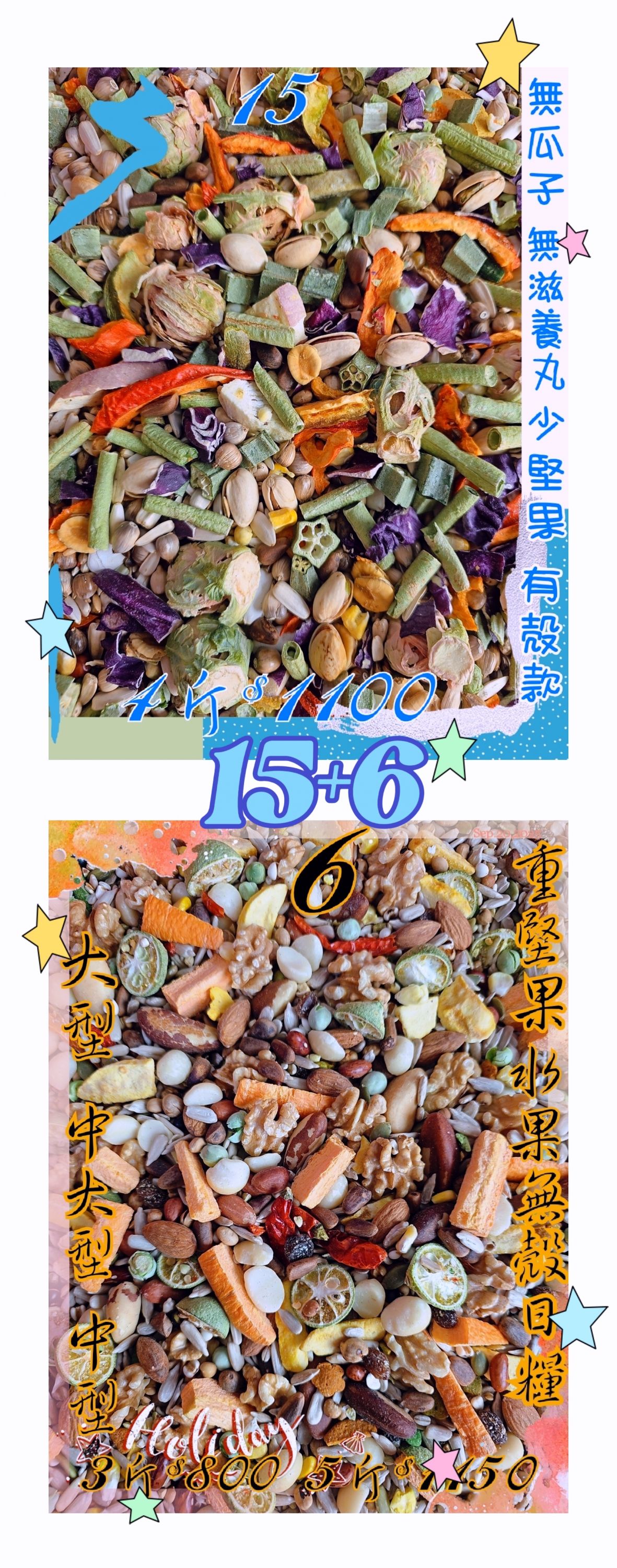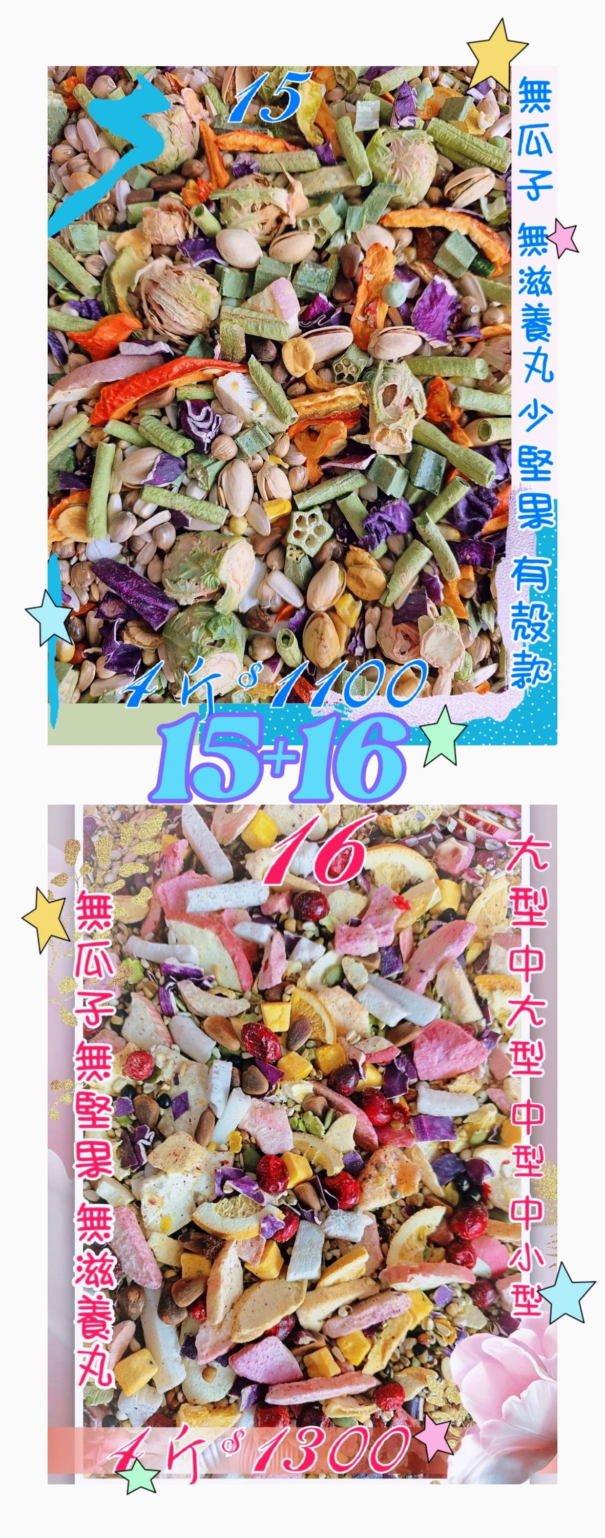 💯15號採用(無瓜子、少堅果(含有松子)、無花生、無滋養丸、)可以讓客人自由搭配賣場所有產品一起混吃。