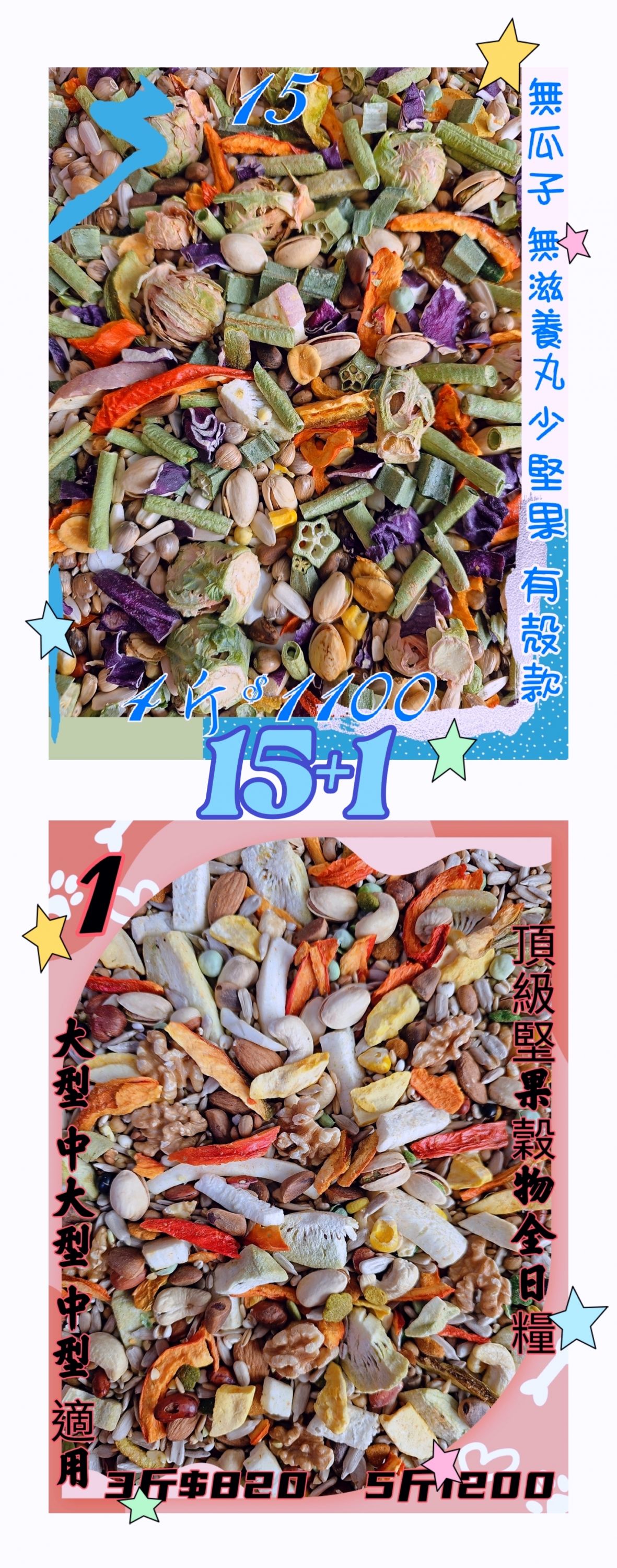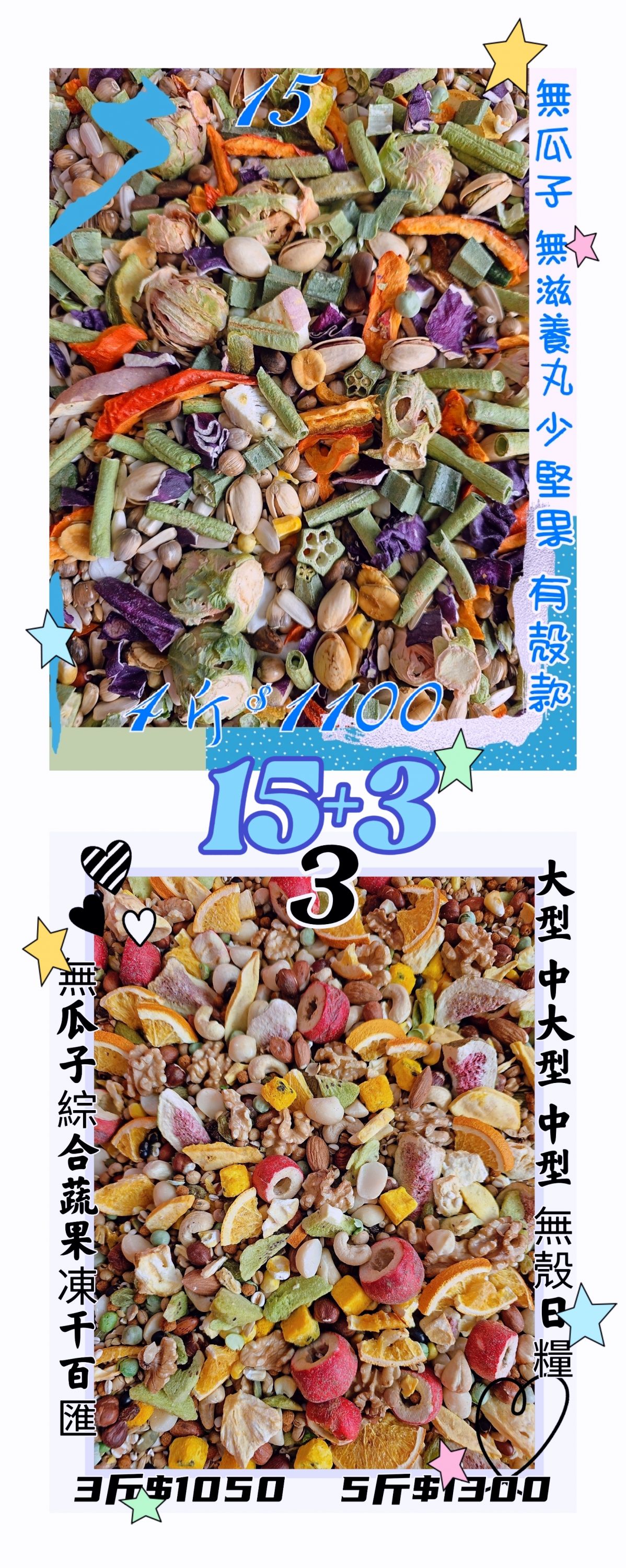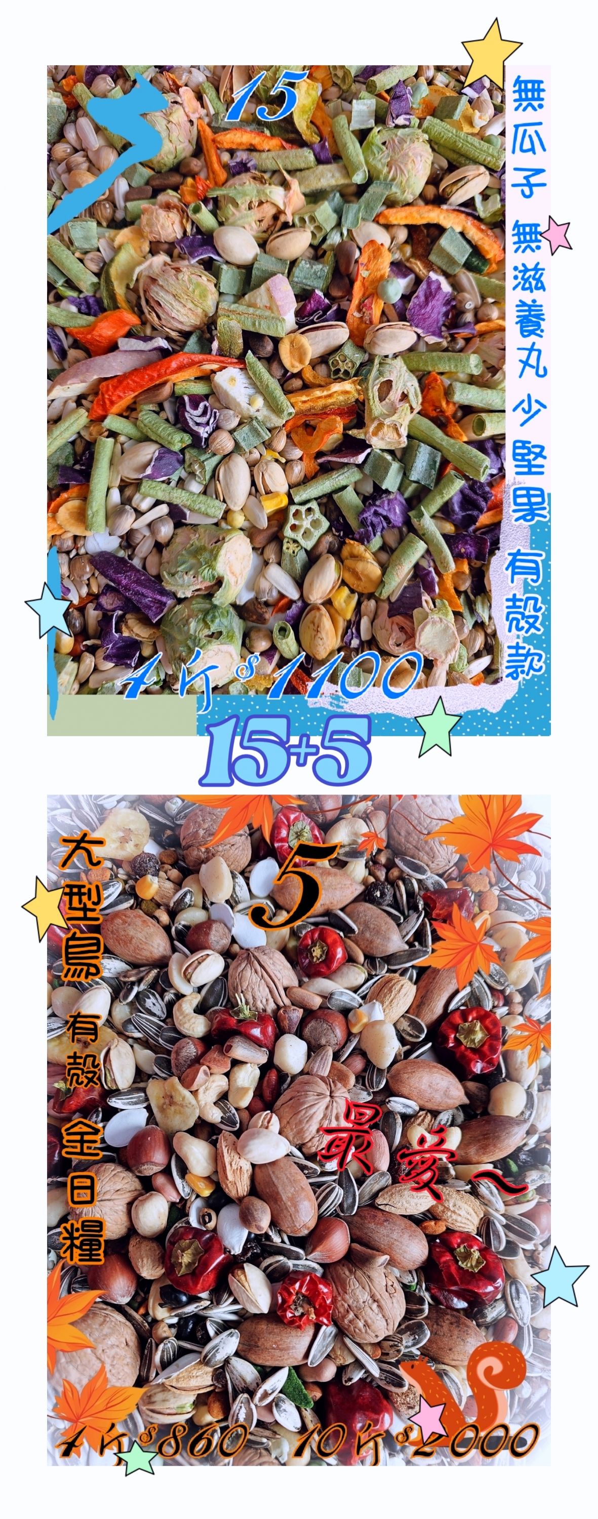 💯15號採用(無瓜子、少堅果(含有松子)、無花生、無滋養丸、)可以讓客人自由搭配賣場所有產品一起混吃。