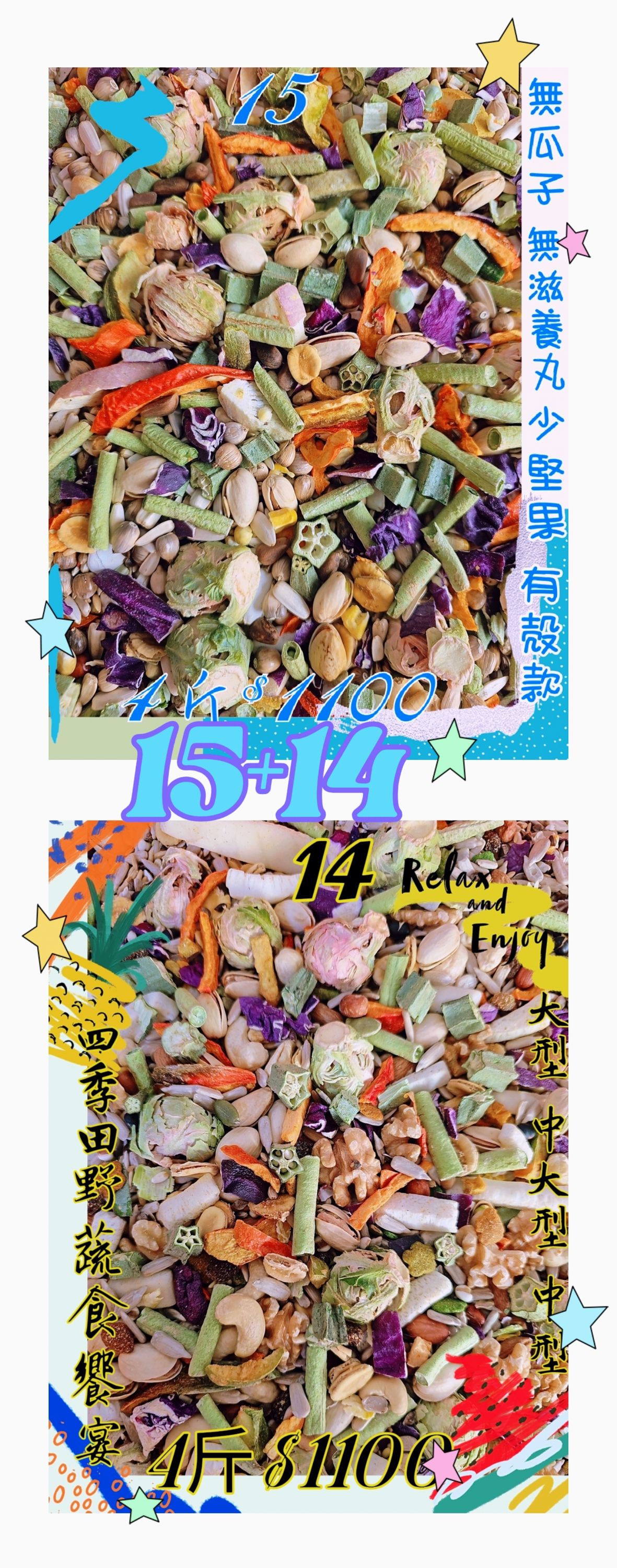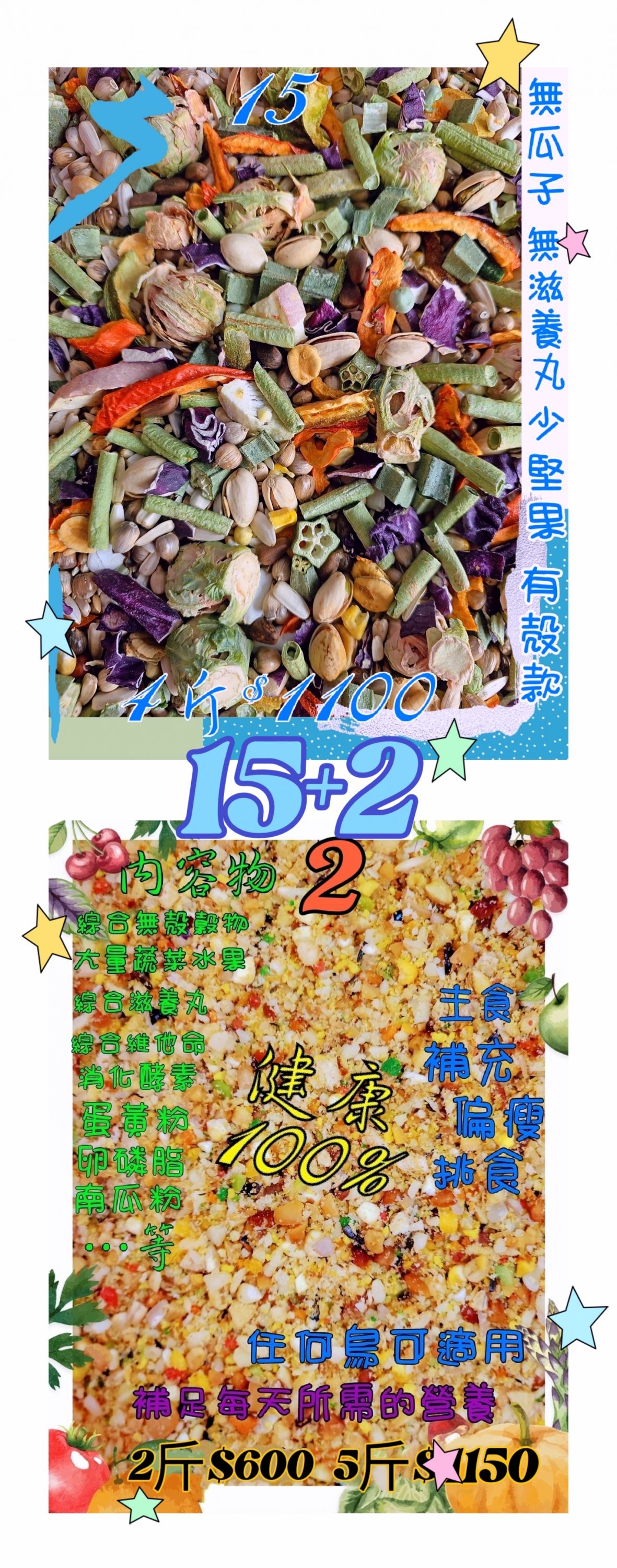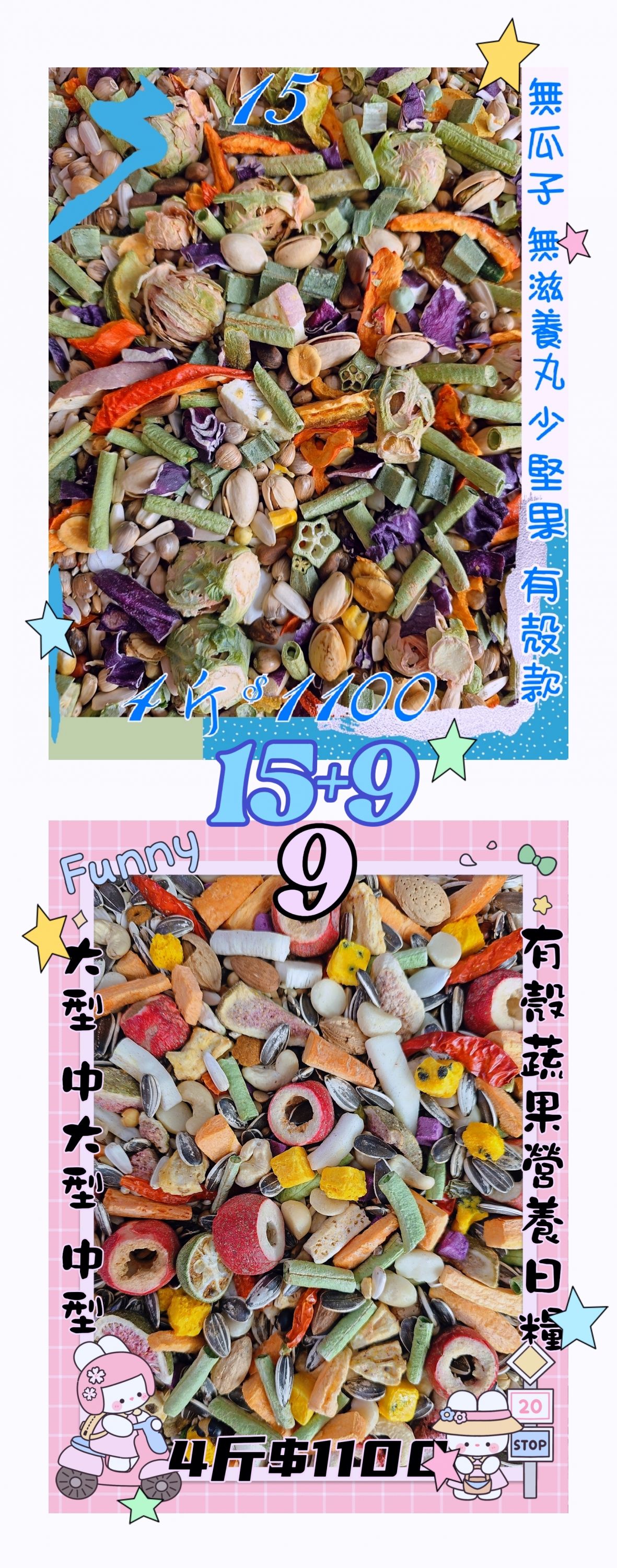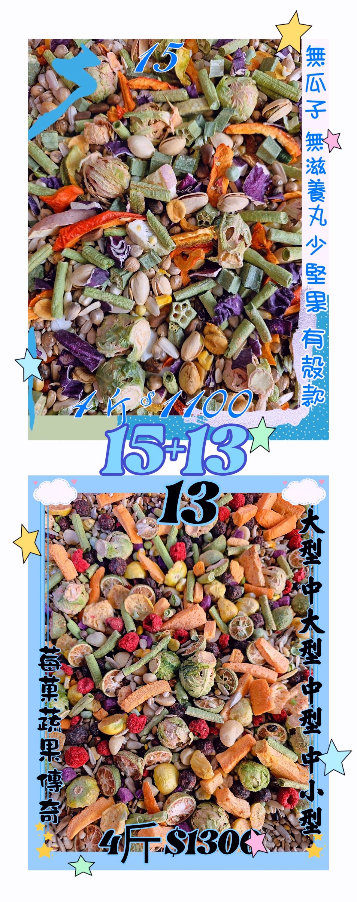 💯15號採用(無瓜子、少堅果(含有松子)、無花生、無滋養丸、)可以讓客人自由搭配賣場所有產品一起混吃。