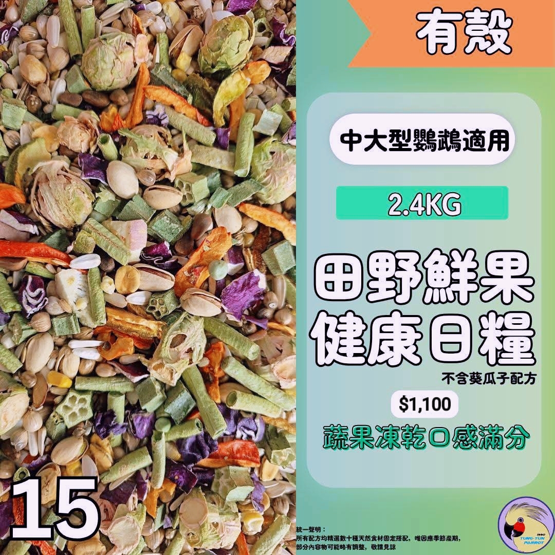 15號:大型,中型,中大型鸚鵡更好咬勁、內有許多豐富穀物蔬果凍干都是鸚鵡很喜愛的食物、又可以幫助咬合力,完全採用食品級原料。如果想要在更豐富又均衡營養可以搭賣場有殼食用(4.8.9.),這幾款都是有殼日糧。可以搭配一起混15號吃、營養加分+效果極佳+鸚鵡超愛⋯嗜口性超棒~鸚鵡超愛咬的咔ㄗ咔ㄗ的唷!健康百分百