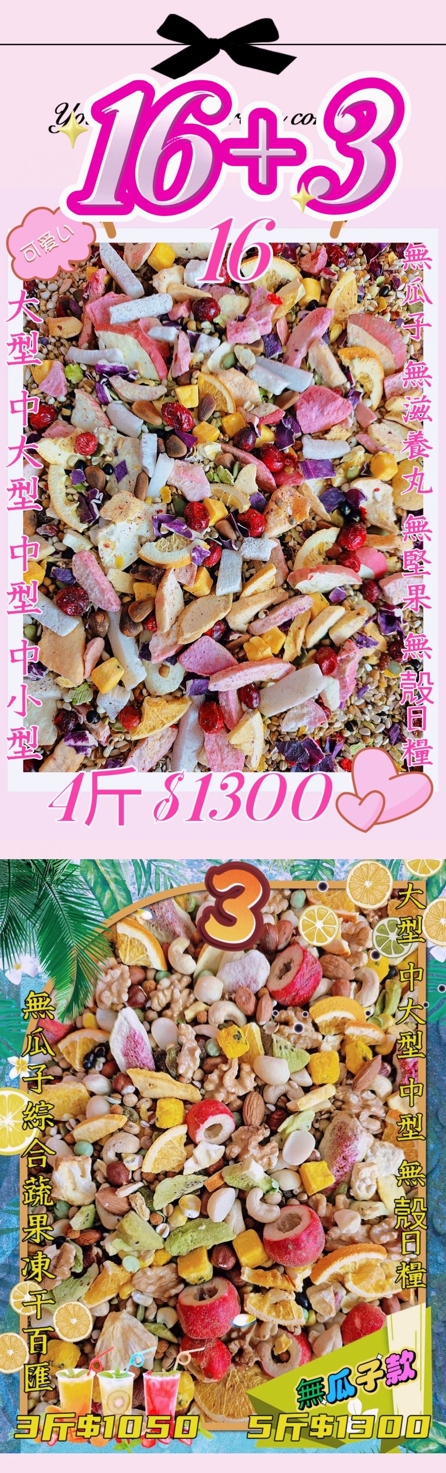 💯16號採用(無瓜子、無堅果、無花生、無滋養丸、)可以讓客人自由搭配賣場所有產品一起混吃。