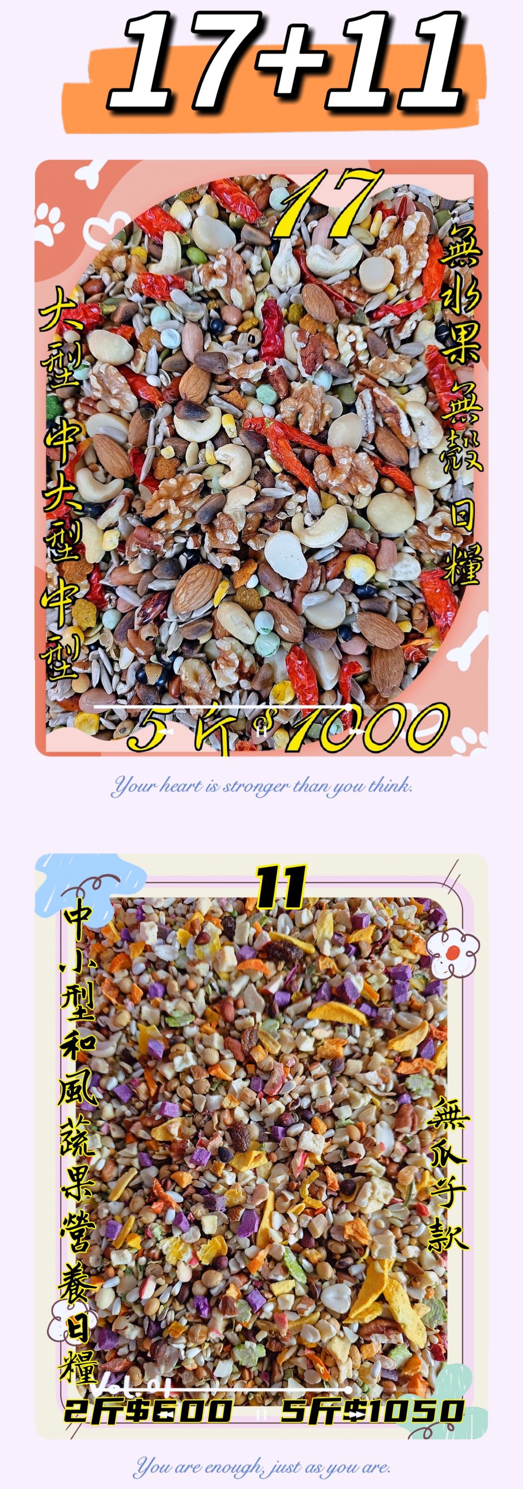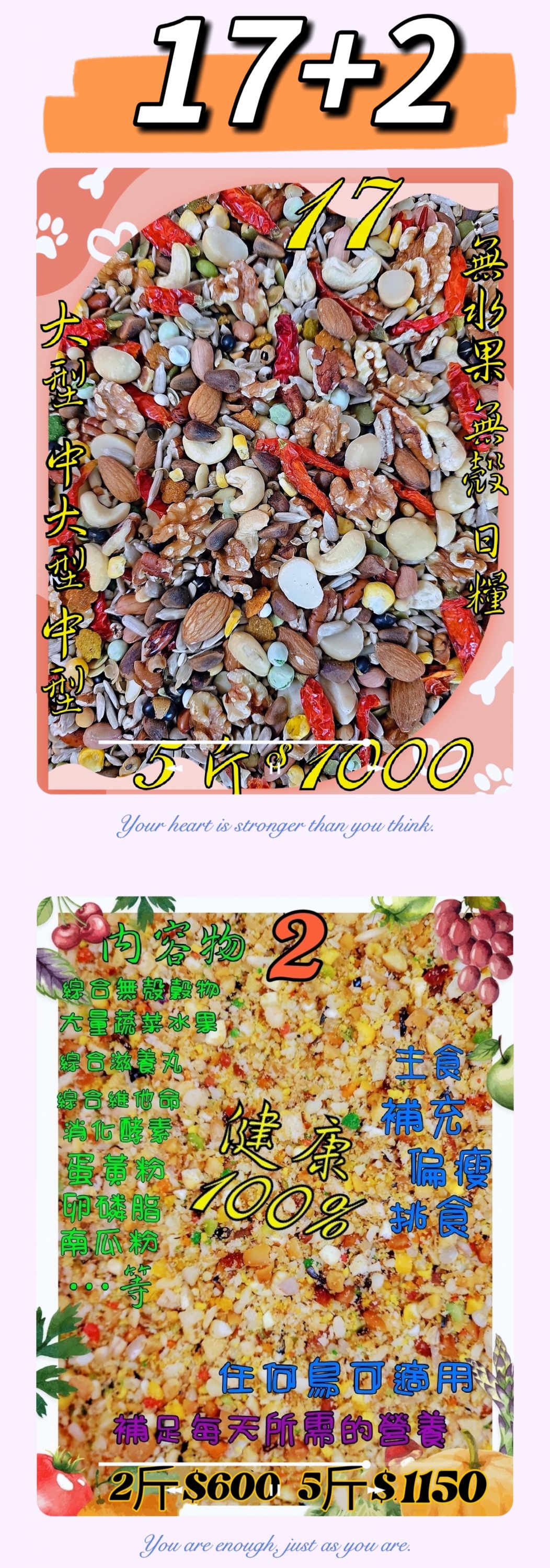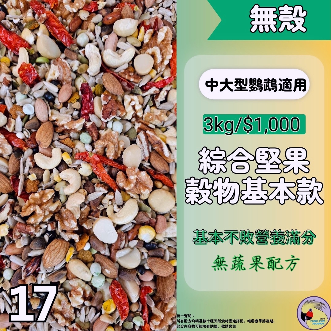 17號本款採用無水果無殼日糧....給不喜歡吃水果的鸚鵡可以選擇